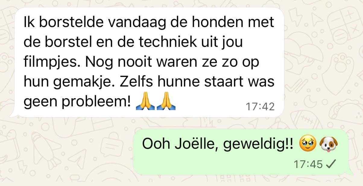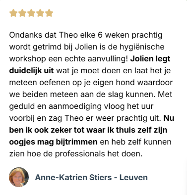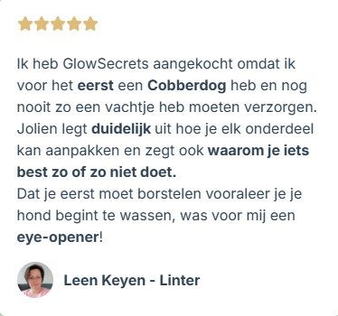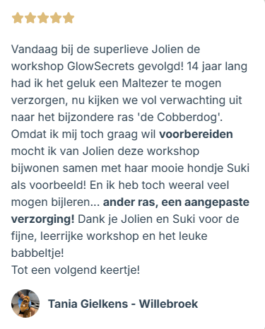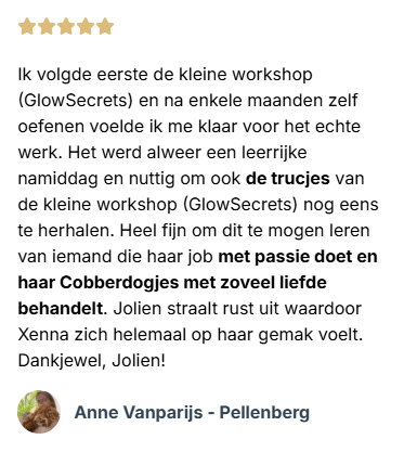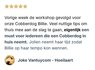 In mijn één-op-één sessies en workshops leerde ik al dertigtal baasjes hoe ze hun Cobberdog of Doodle zélf kunnen verzorgen.